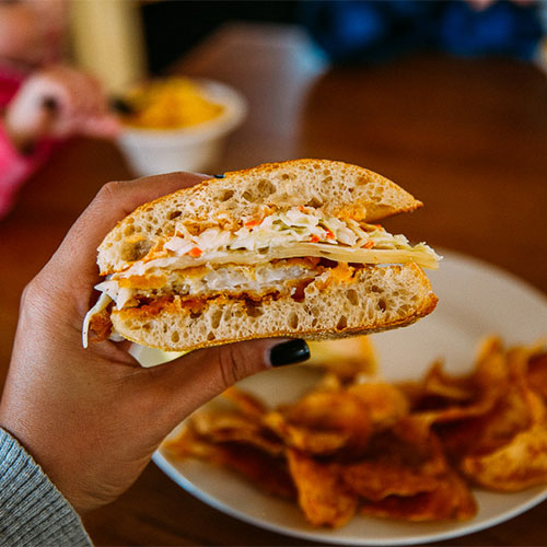 I love their entire menu, but every time I go, I end up ordering the Cape Cod Reuben. It’s a sandwich of lightly battered cod, Swiss cheese, coleslaw, and Russian dressing on a ciabatta roll. It’s served with a side of fresh cooked potato chips, or when I’m extra hungry I swap the chips for french fries. I’m often tempted to try something else from their menu, but I feel like perfection cannot be improved upon. Haha. They also have a fantastic craft beer selection and a beer garden. For the kids, there is a fun play area featuring a wooden train and a little petting/feeding area with chickens and goats. The farm market itself is full of fresh produce and specialty goods like local honey, jam, meat, and cheeses.